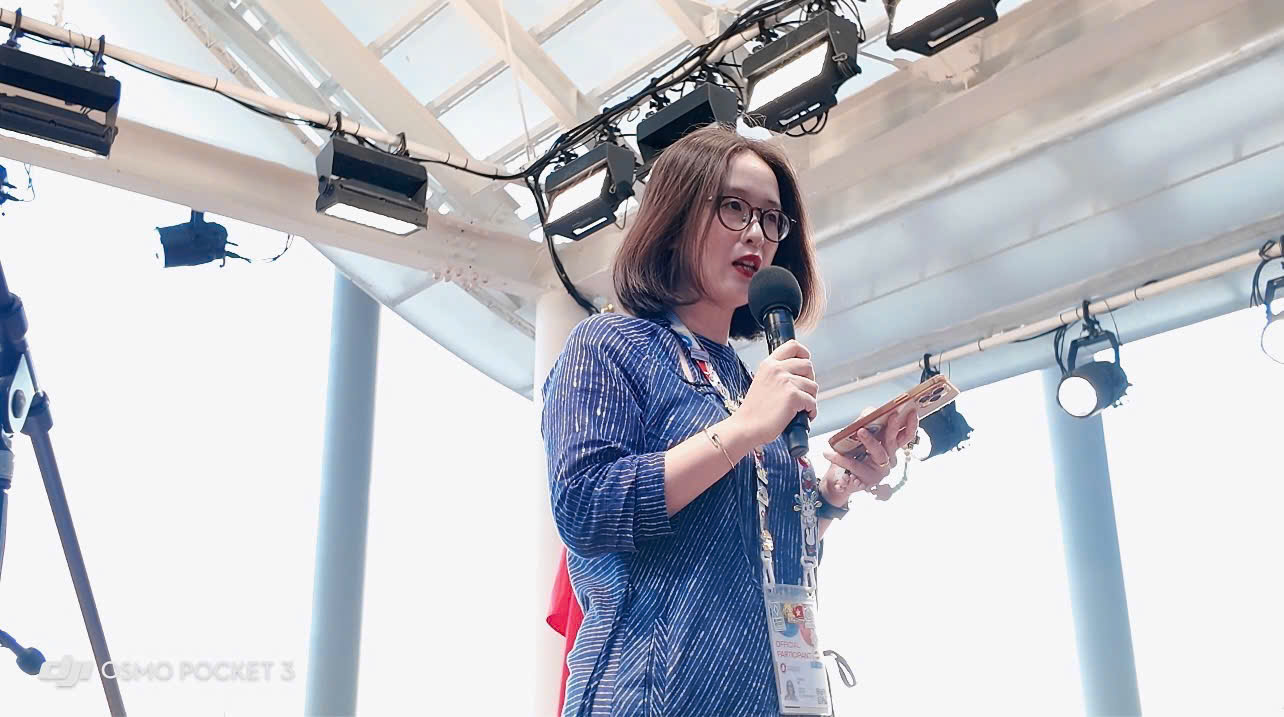 Bà Đỗ Lan Phương, Giám đốc Nhà triển lãm Việt Nam phát biểu tại sự kiện