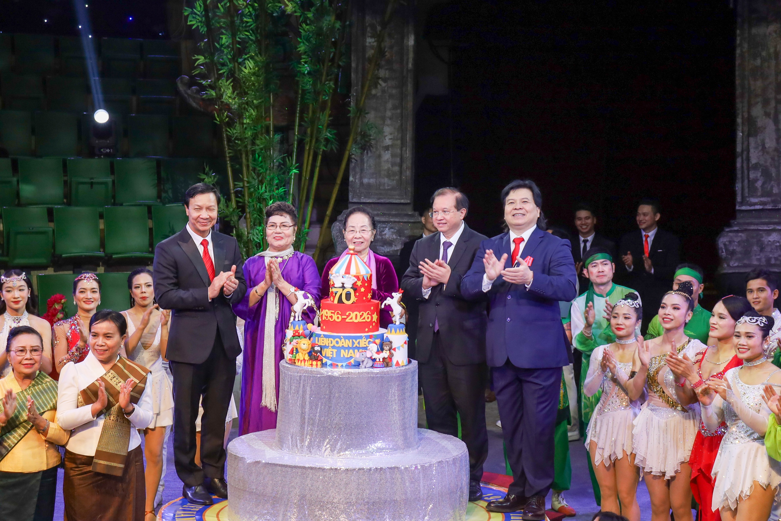 Các đại biểu cùng cắt bánh chúc mừng 70 năm ngày thành lập Liên đoàn Xiếc Việt Nam