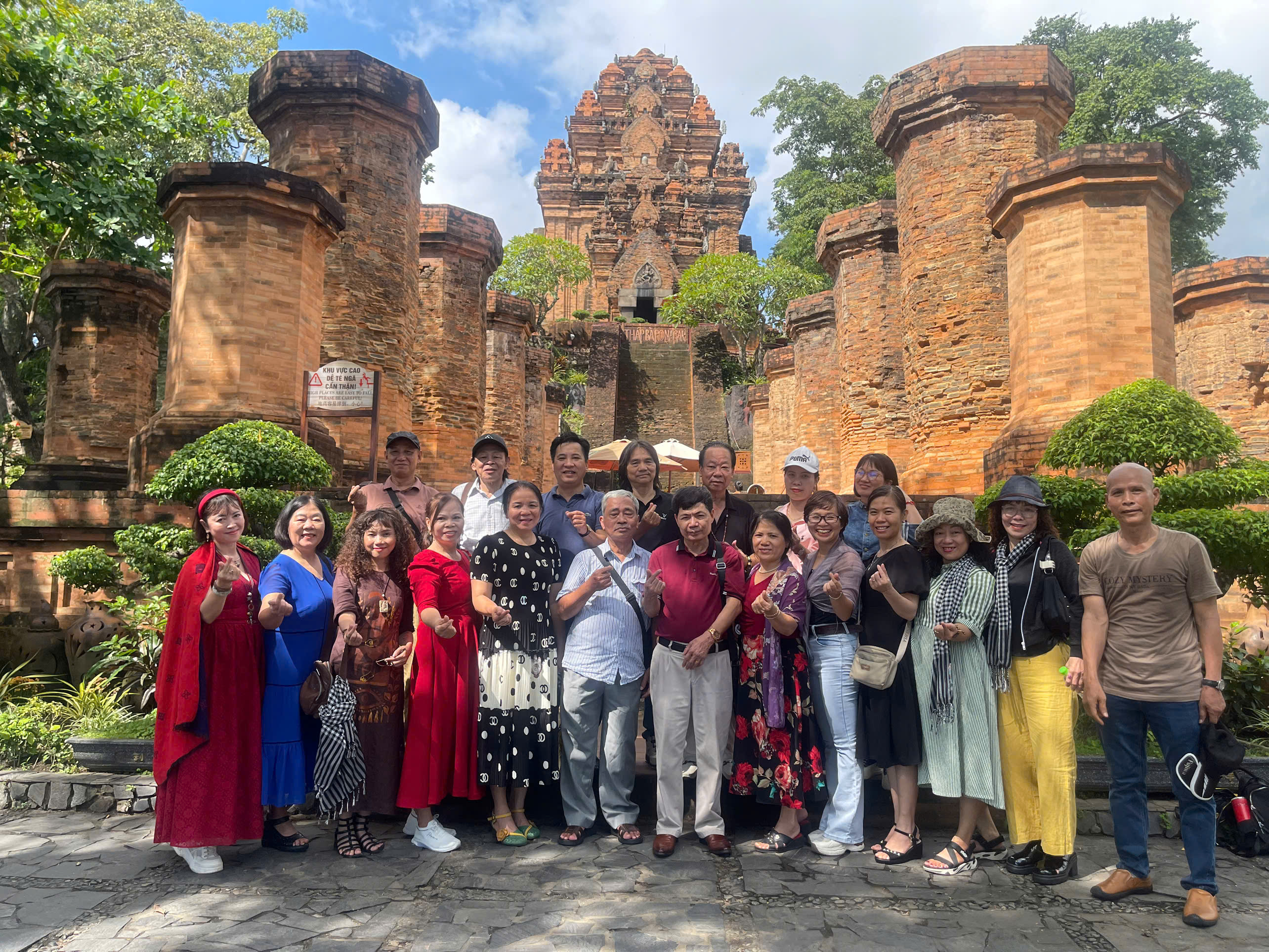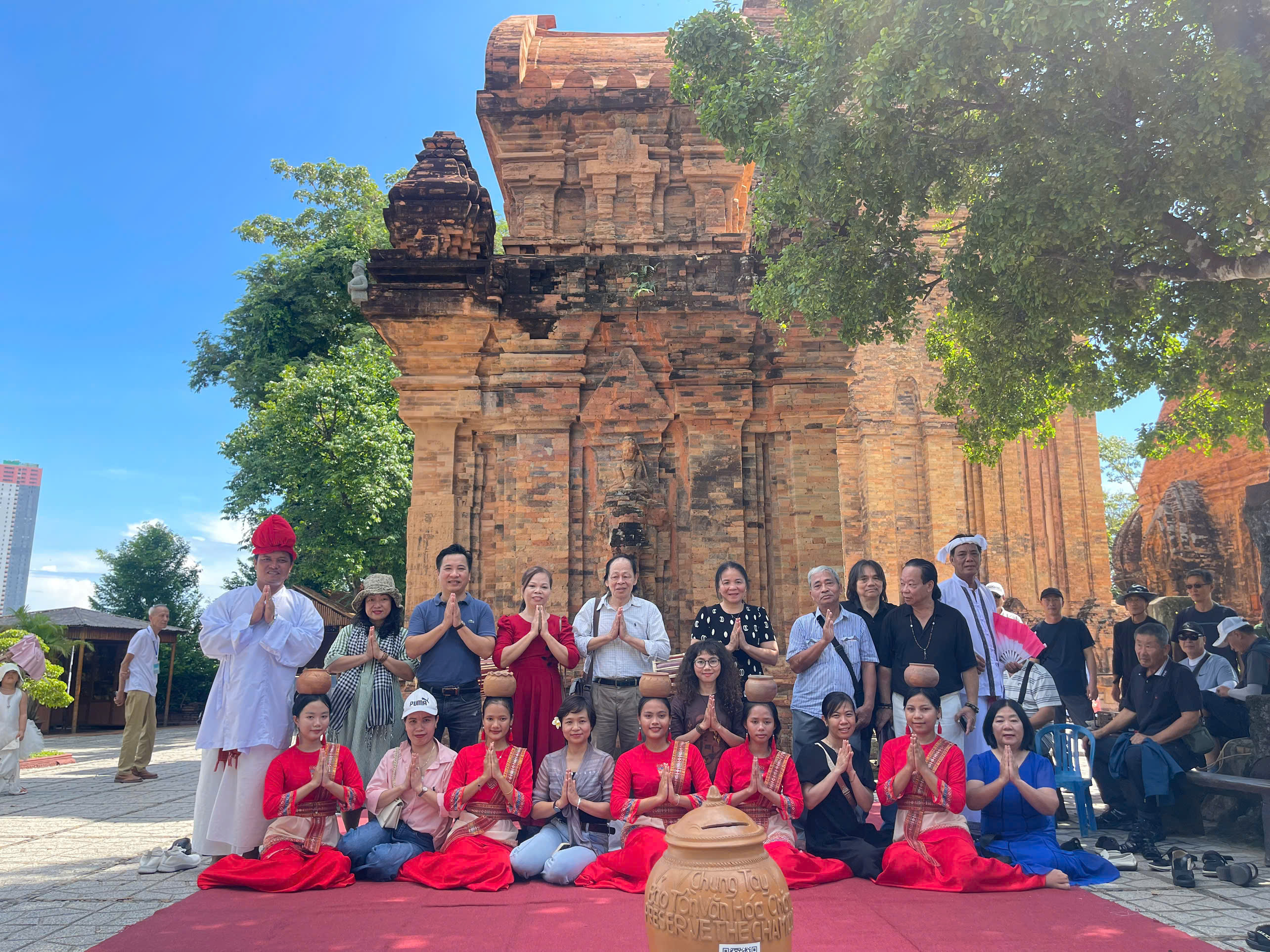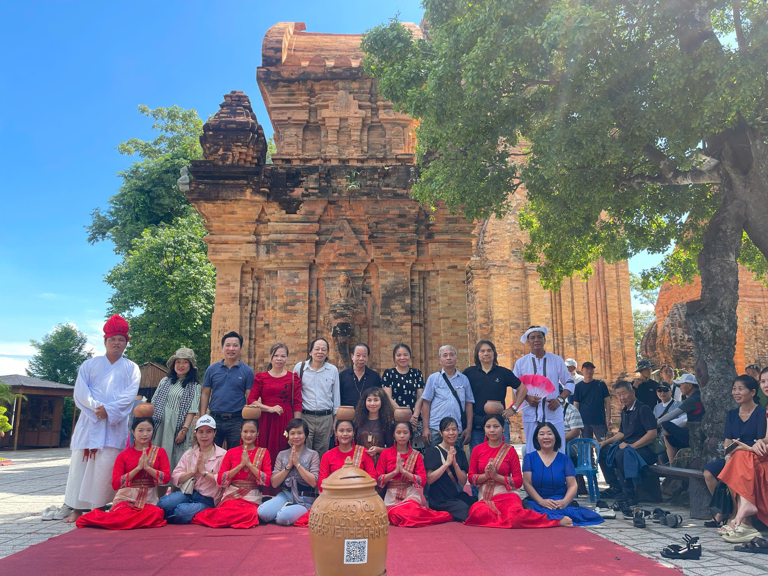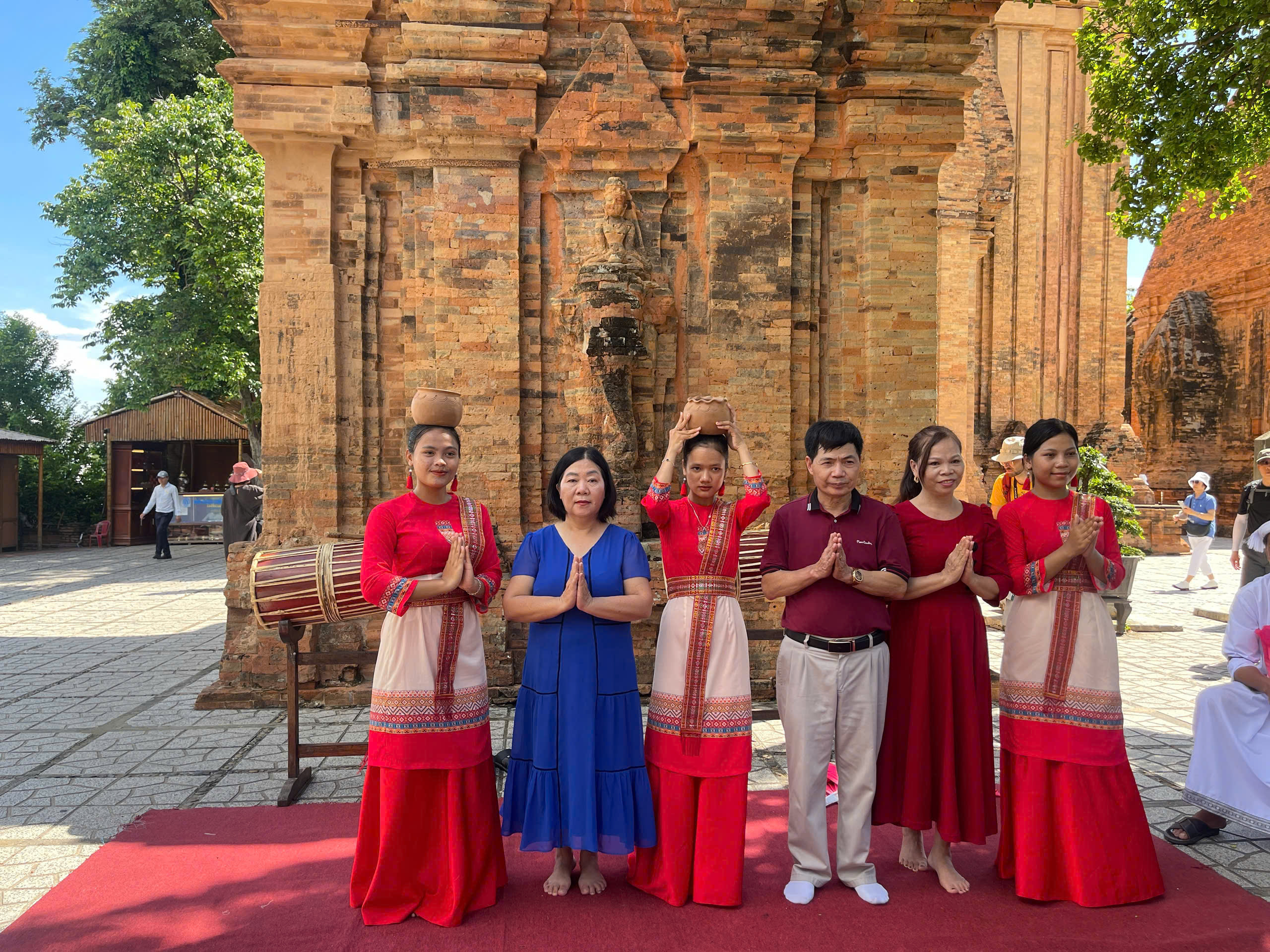Tiếp đó, đoàn đến thăm Khu di tích Tháp Bà Ponagar - công trình kiến trúc độc đáo bậc nhất của người Chăm, tồn tại hàng nghìn năm mà không hề có chất kết dính trong những viên gạch xếp chồng khít. Tại đây, các trại viên được nghe thuyết minh về lịch sử hình thành, truyền thuyết nữ thần Po Inư Nagar, dâng hương tại tháp chính, thưởng thức điệu múa Apsara uyển chuyển cùng âm nhạc truyền thống đặc trưng.