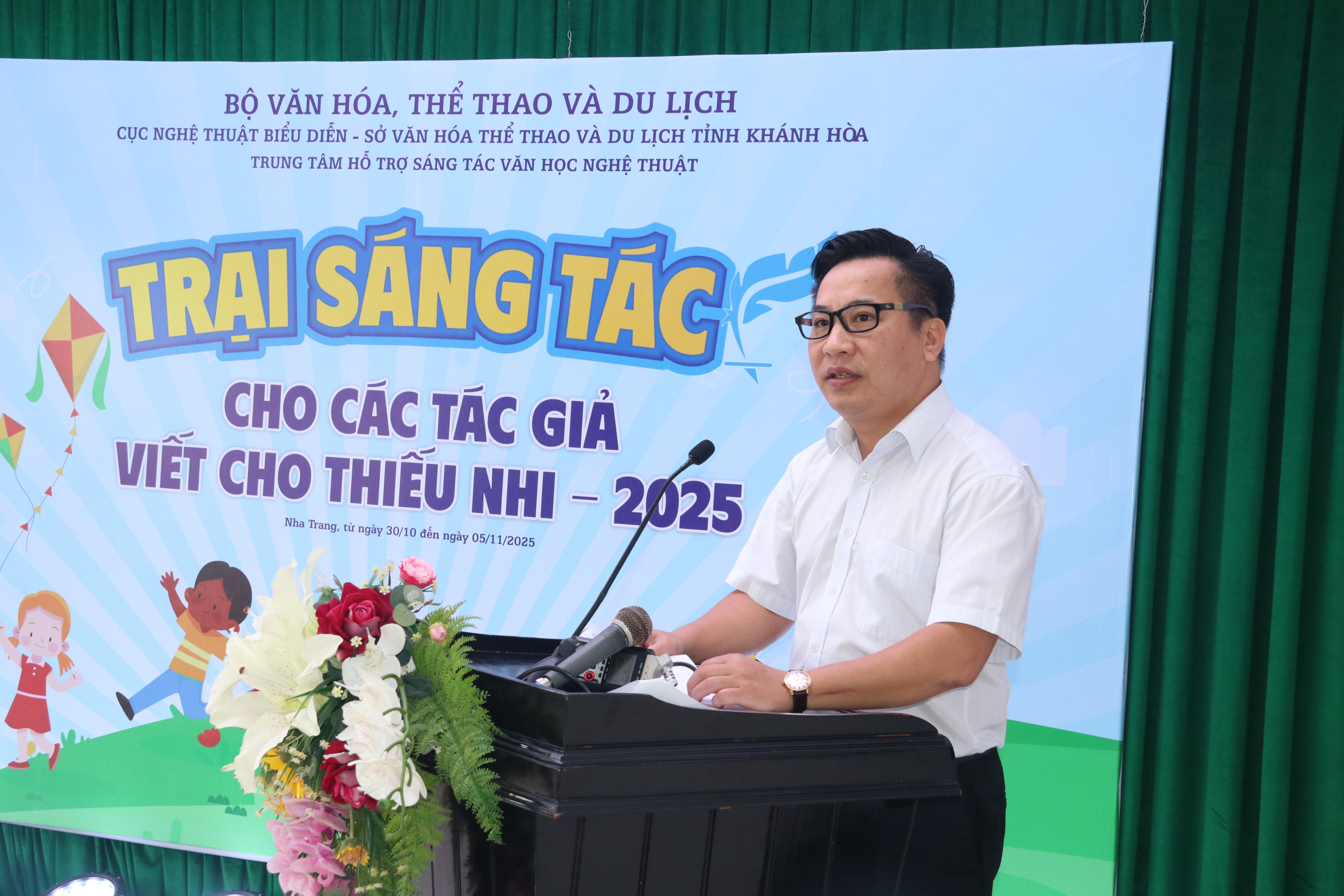 Sáng ngày 01/11/2025, tại Nha Trang, tỉnh Khánh Hòa – miền đất giàu truyền thống văn hóa và chan hòa hơi thở của Biển – Cục Nghệ thuật biểu diễn (Bộ Văn hóa, Thể thao và Du lịch) chủ trì, phối hợp Sở VHTTDL tỉnh Khánh Hòa, Trung tâm Hỗ trợ sáng tác văn học nghệ thuật cùng các đơn vị chức năng trang trọng tổ chức Lễ Khai mạc Trại sáng tác các tác giả viết cho thiếu nhi năm 2025.