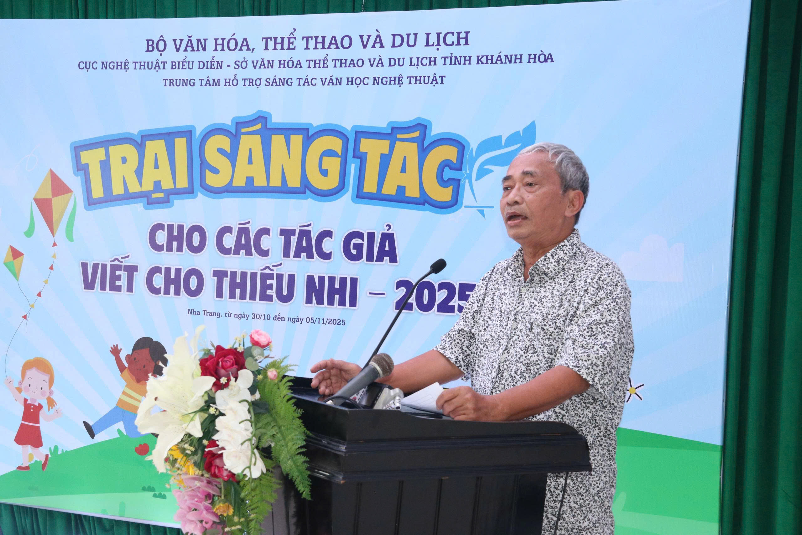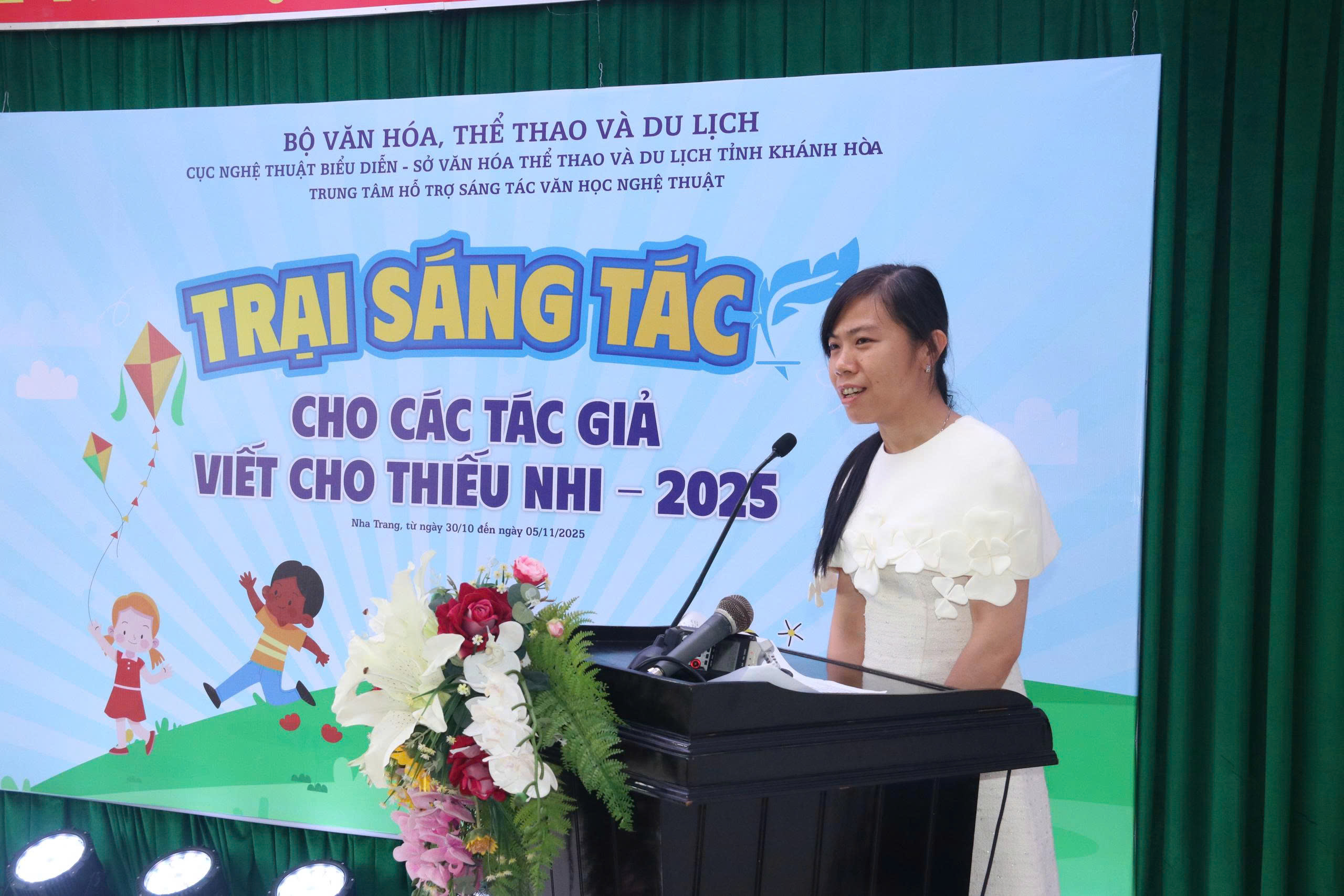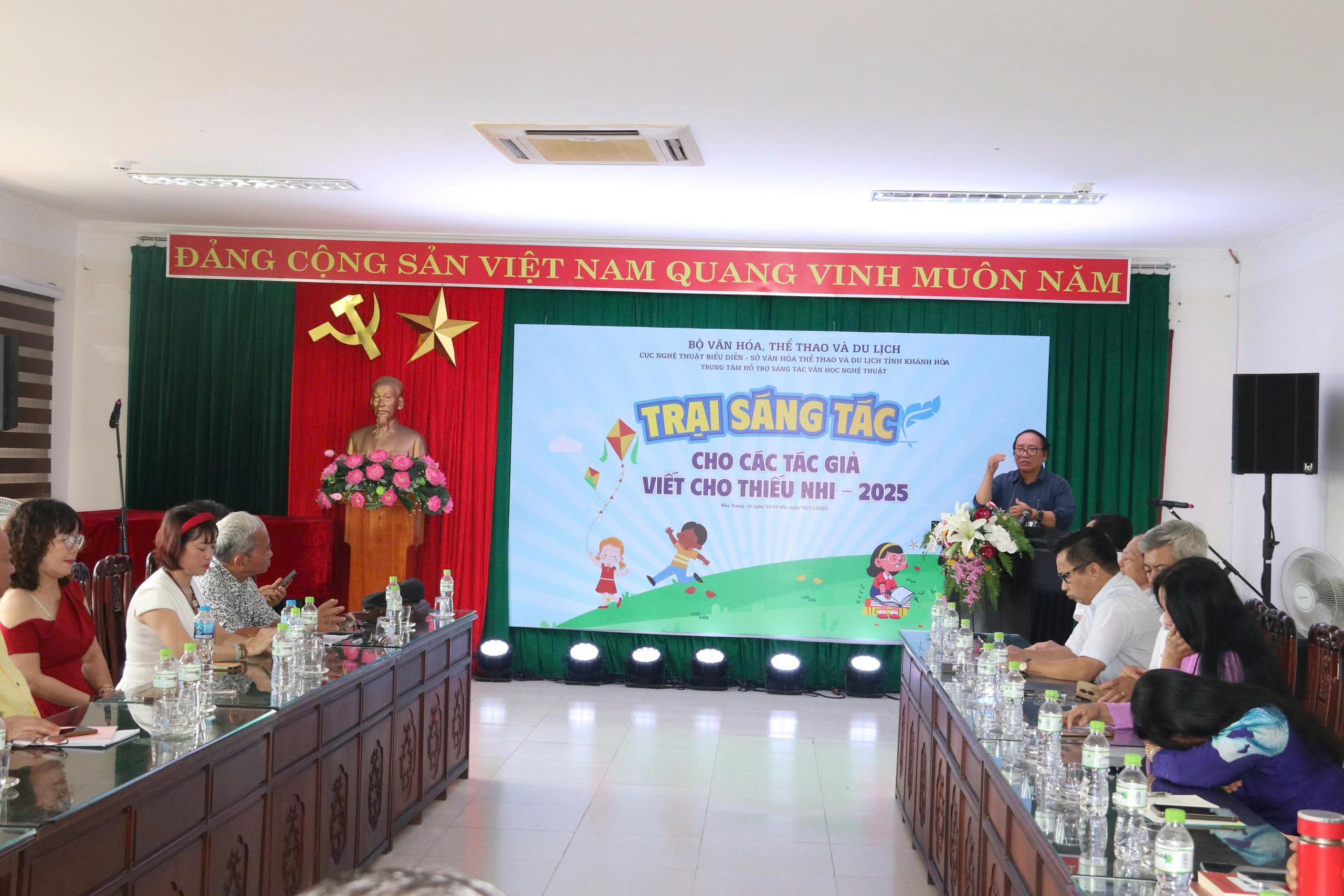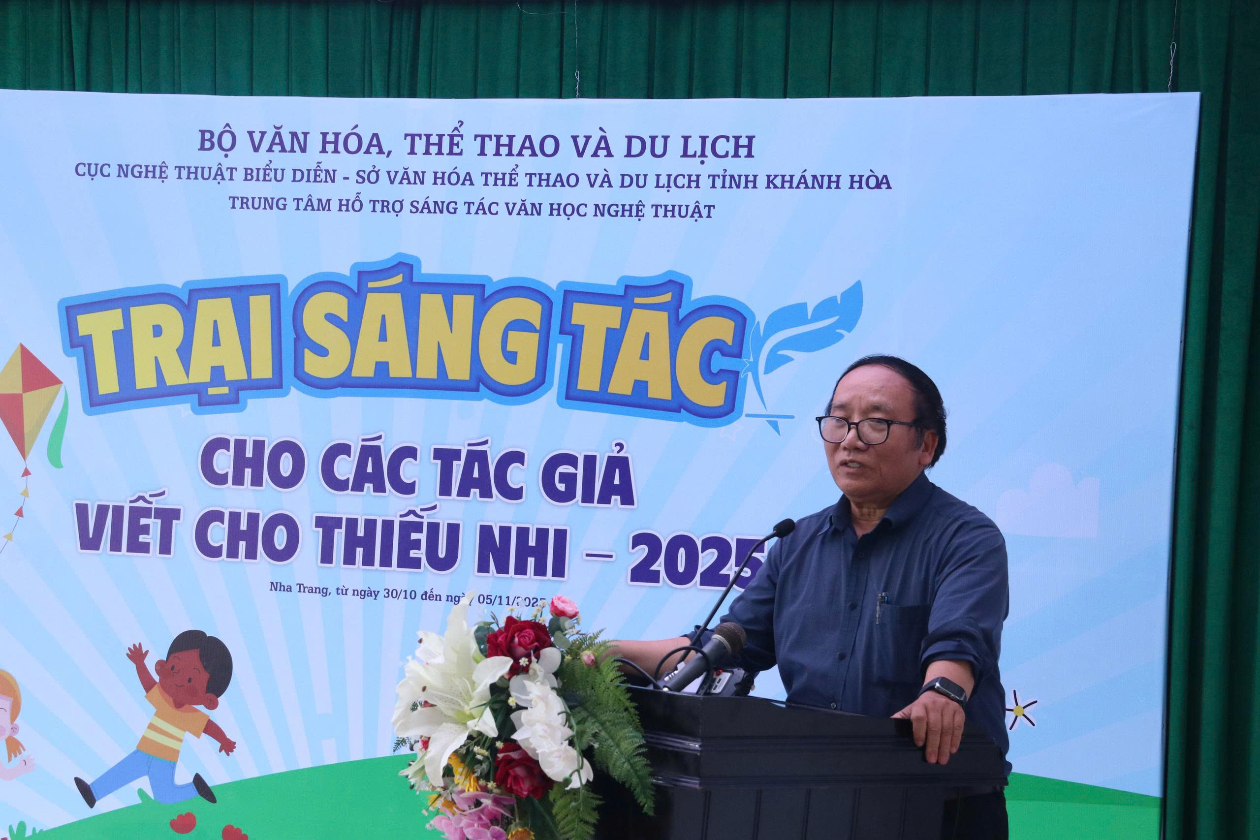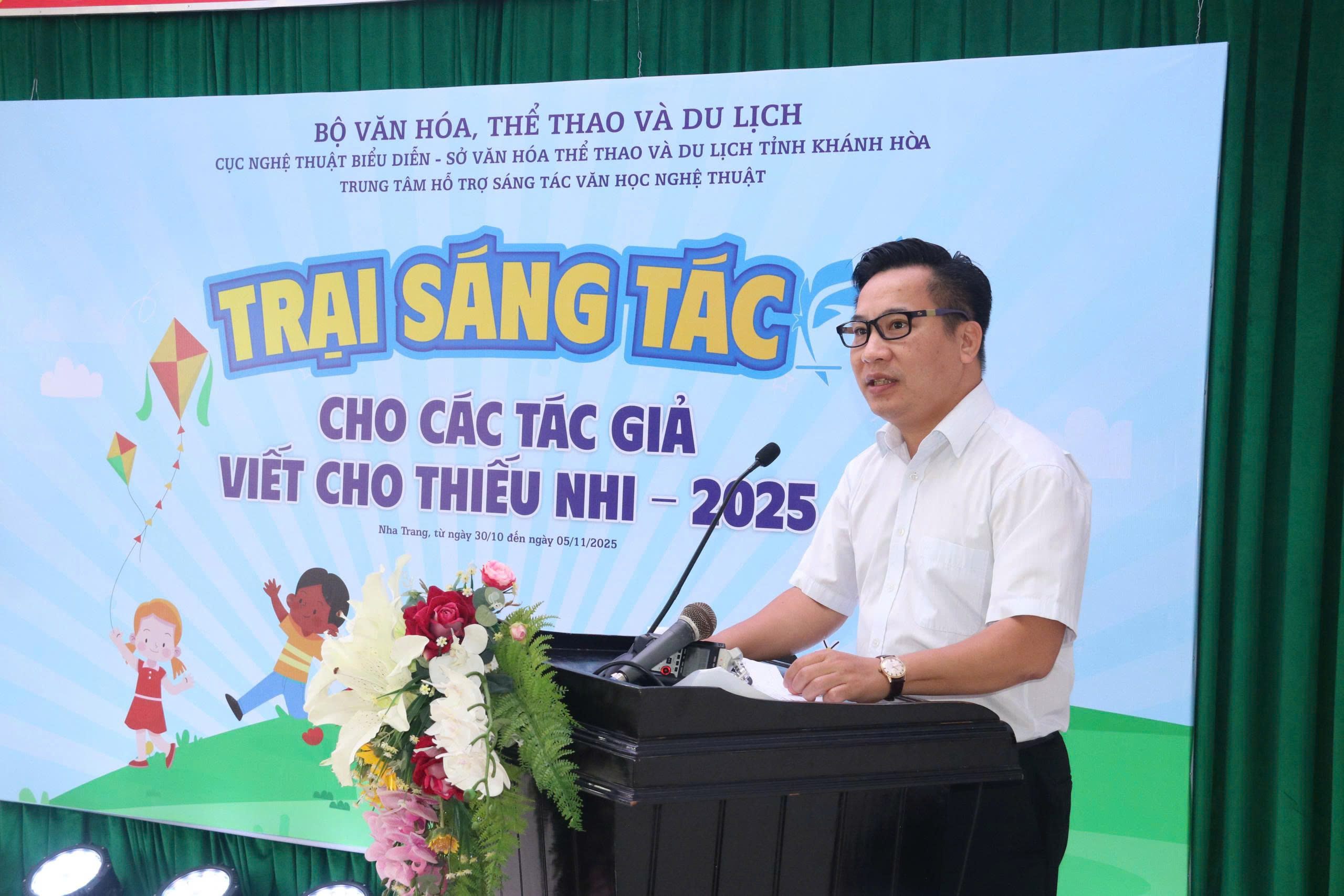 Sáng ngày 01/11/2025, tại Nha Trang, tỉnh Khánh Hòa – miền đất giàu truyền thống văn hóa và chan hòa hơi thở của Biển – Cục Nghệ thuật biểu diễn (Bộ Văn hóa, Thể thao và Du lịch) chủ trì, phối hợp Sở VHTTDL tỉnh Khánh Hòa, Trung tâm Hỗ trợ sáng tác văn học nghệ thuật cùng các đơn vị chức năng trang trọng tổ chức Lễ Khai mạc Trại sáng tác các tác giả viết cho thiếu nhi năm 2025.