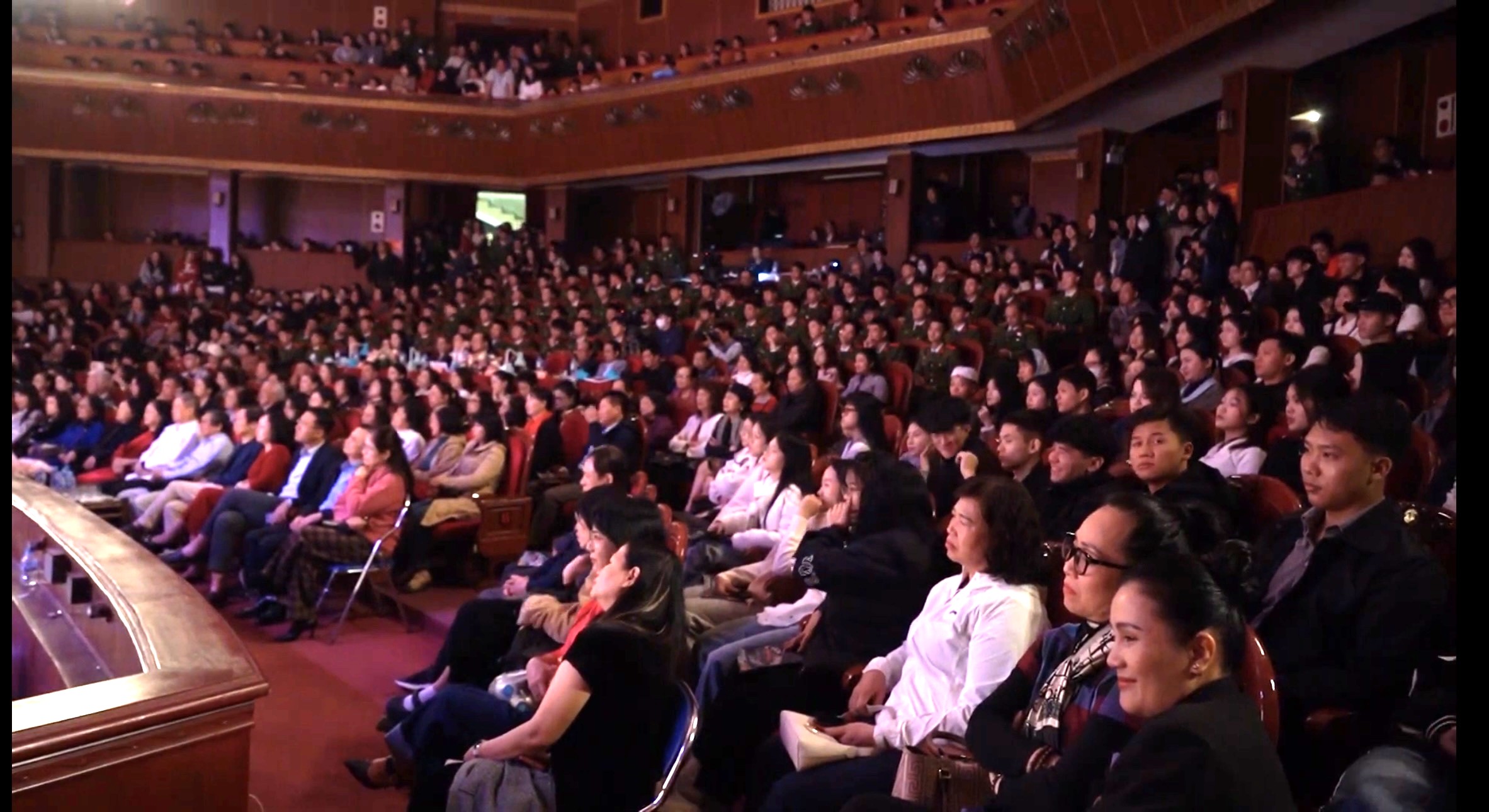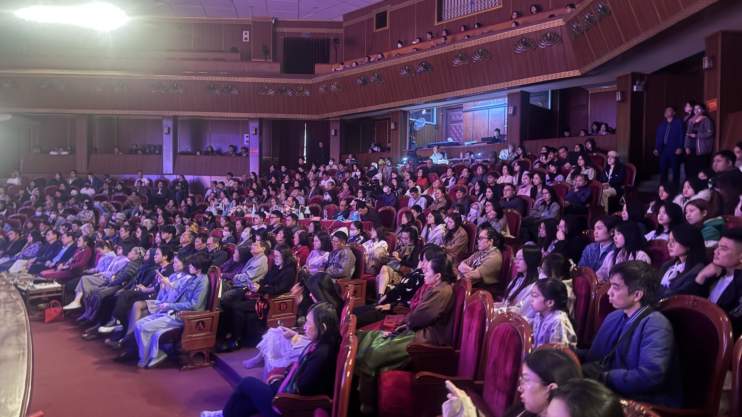 Không chỉ là sự kiện của giới nghề, Liên hoan năm nay thực sự trở thành bữa tiệc nghệ thuật dành cho công chúng. Trước giờ diễn, khán giả đã đứng chật lối vào; nhiều khán giả đến sớm hàng tiếng chỉ để chọn được chỗ ngồi ưng ý. Từ tầng trệt đến tầng hai, các hàng ghế gần như không còn chỗ trống. Ông bà, cha mẹ, các bạn trẻ, học sinh… cùng quây quần trong một không gian chung, cùng chờ khoảnh khắc sân khấu sáng đèn. Những tràng pháo tay dài, những tiếng “ồ” ngạc nhiên, những phút lặng đi vì xúc động, tất cả tạo nên một bầu không khí mà bất cứ nghệ sĩ nào cũng xem là món quà vô giá.