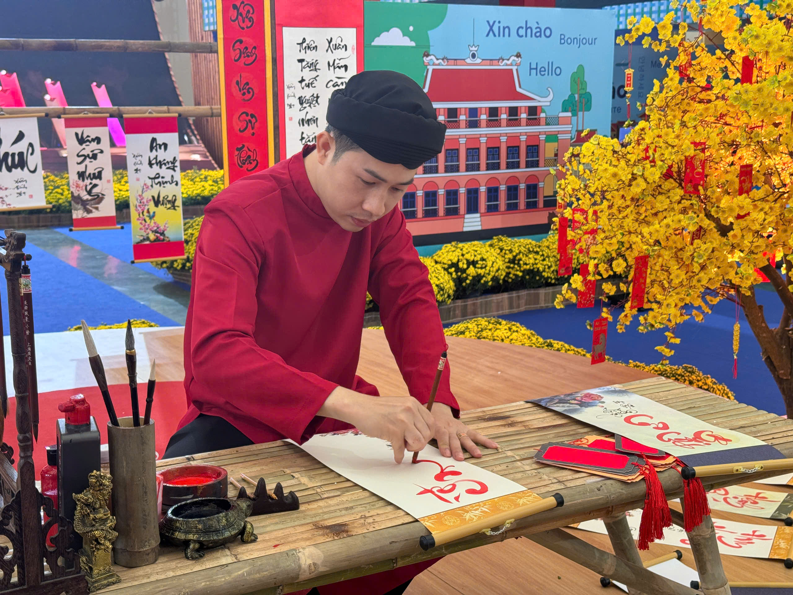 Trải nghiệm đan thắt lá dừa, thư pháp ngày xuân mang đến cho người tham gia cơ hội trực tiếp tìm hiểu những nghề thủ công truyền thống, qua đó cảm nhận rõ hơn sự khéo léo, tinh tế của nghệ nhân và không khí Tết cổ truyền ấm áp, đậm đà bản sắc văn hóa dân tộc.